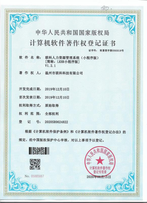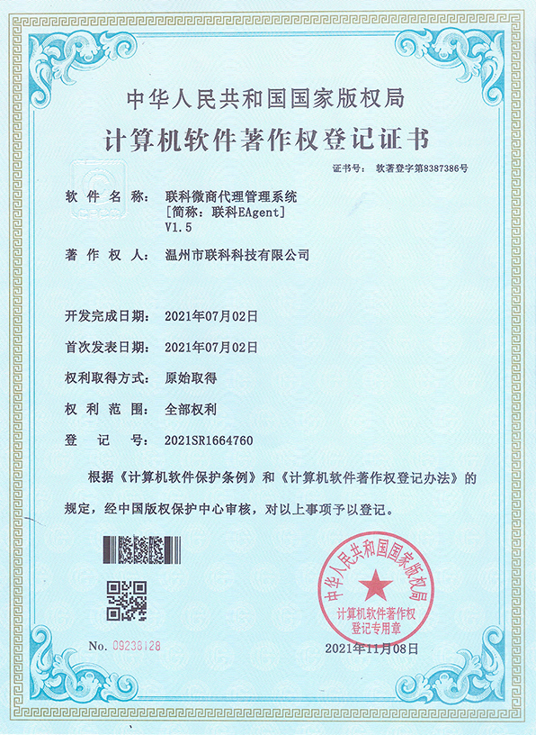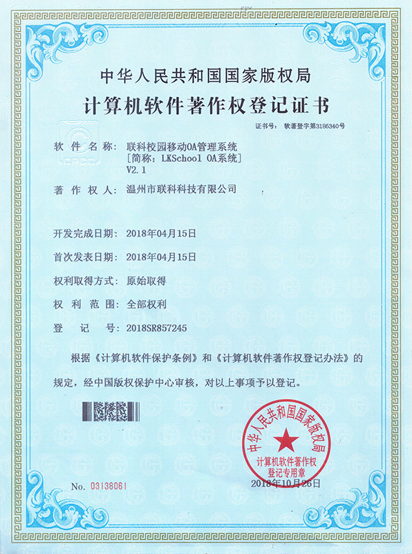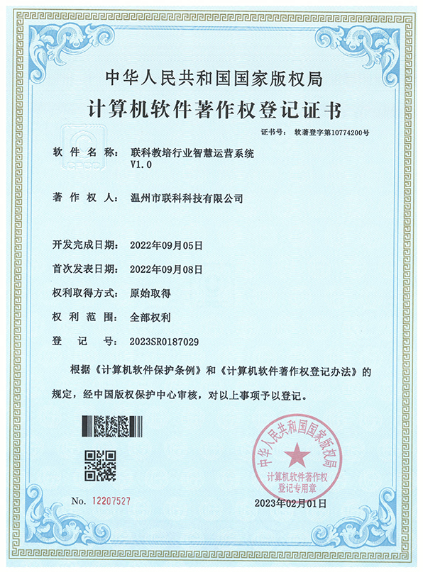 聯(lián)科教培行業(yè)智慧運(yùn)營(yíng)系統(tǒng)V1.0登記證書(shū)(2022R11L2324133)