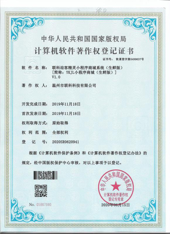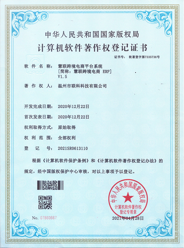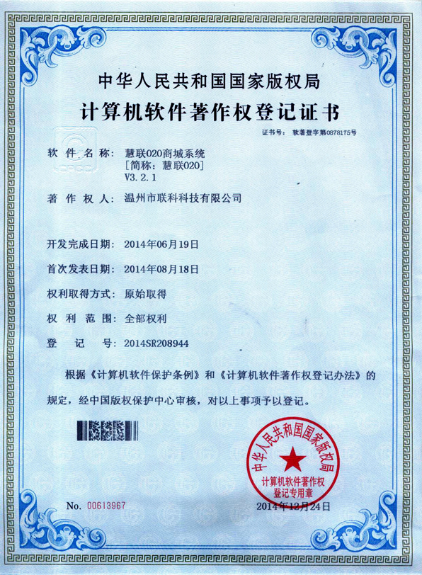 慧聯(lián)O2O商城系統(tǒng)軟件著作權(quán)證書(shū)