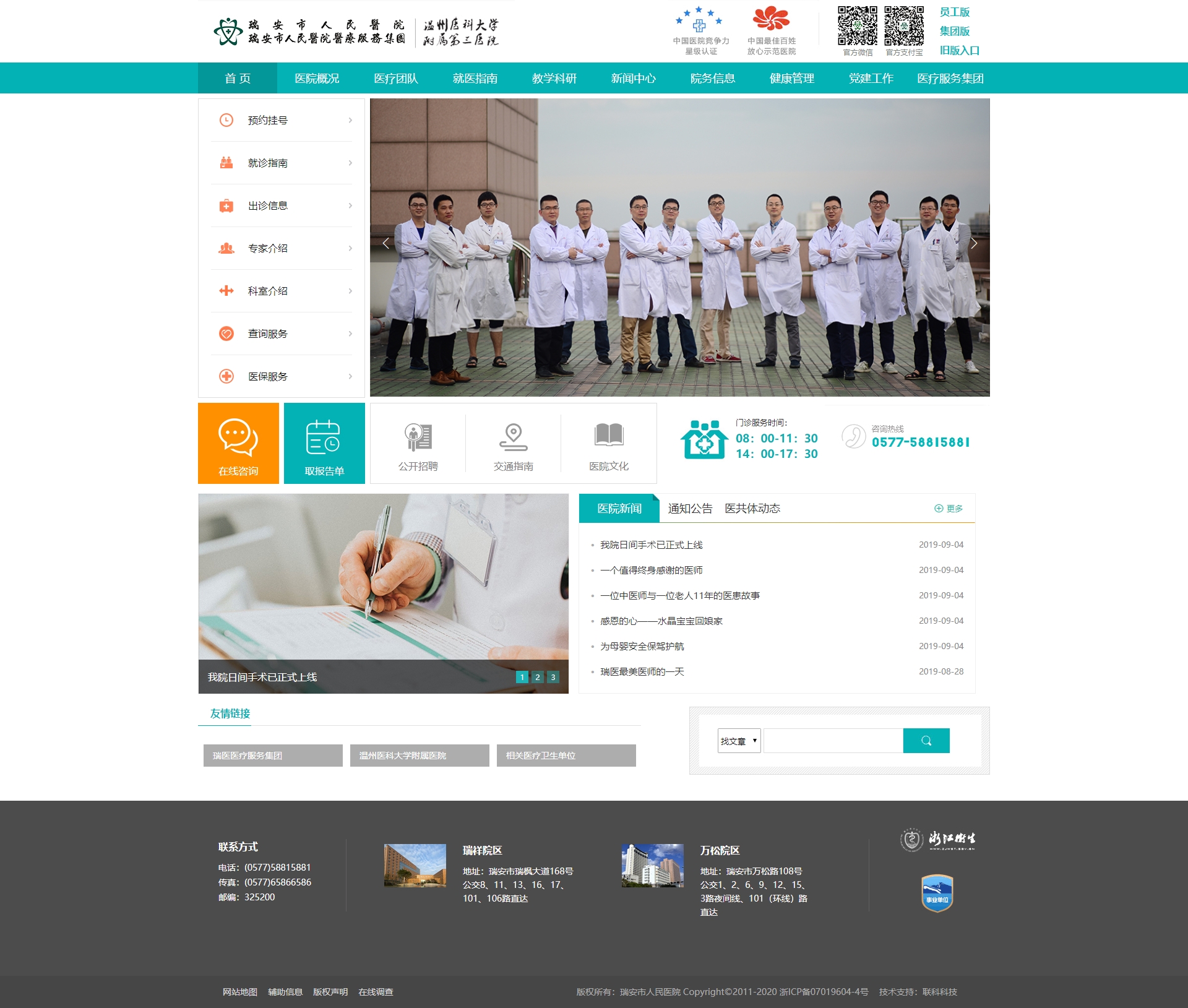 瑞安市人民醫(yī)院(溫州醫(yī)科大學附屬第三醫(yī)院)是瑞安地區(qū)規(guī)模最大的集醫(yī)療、科研、教學、預防、保健、康復于一體的大型綜合性醫(yī)院,是浙江省衛(wèi)生廳核準的綜合性三級乙等醫(yī)院。醫(yī)院采取“一院兩區(qū)”模式(即萬松院區(qū)、瑞祥院區(qū))兩個院區(qū)專業(yè)互補、行政一體,兩院區(qū)齊頭并進,共同打造浙南閩北醫(yī)療教學、科研、臨床中心,成為瑞安乃至溫州的醫(yī)療品牌。醫(yī)院目前開放床位2008張,共設臨床專業(yè)學科47個,病區(qū)54個,擁有35間潔凈手術間和功能齊全的重癥監(jiān)護中心。瑞祥院區(qū)逐步開啟創(chuàng)建感染(肝?。┲行?、骨科中心、腦科中心、腎內(nèi)透析中心、腫瘤治療中心,口腔醫(yī)學中心。2018年醫(yī)院業(yè)務總收入達22.46億元,門急診總診療人次399.8萬人次,住院病人11.35萬人次,住院手術3.94萬例,承擔著瑞安市160多萬人口及周邊平陽、蒼南、文成、泰順等地區(qū)的部分病員的醫(yī)療保健任務。