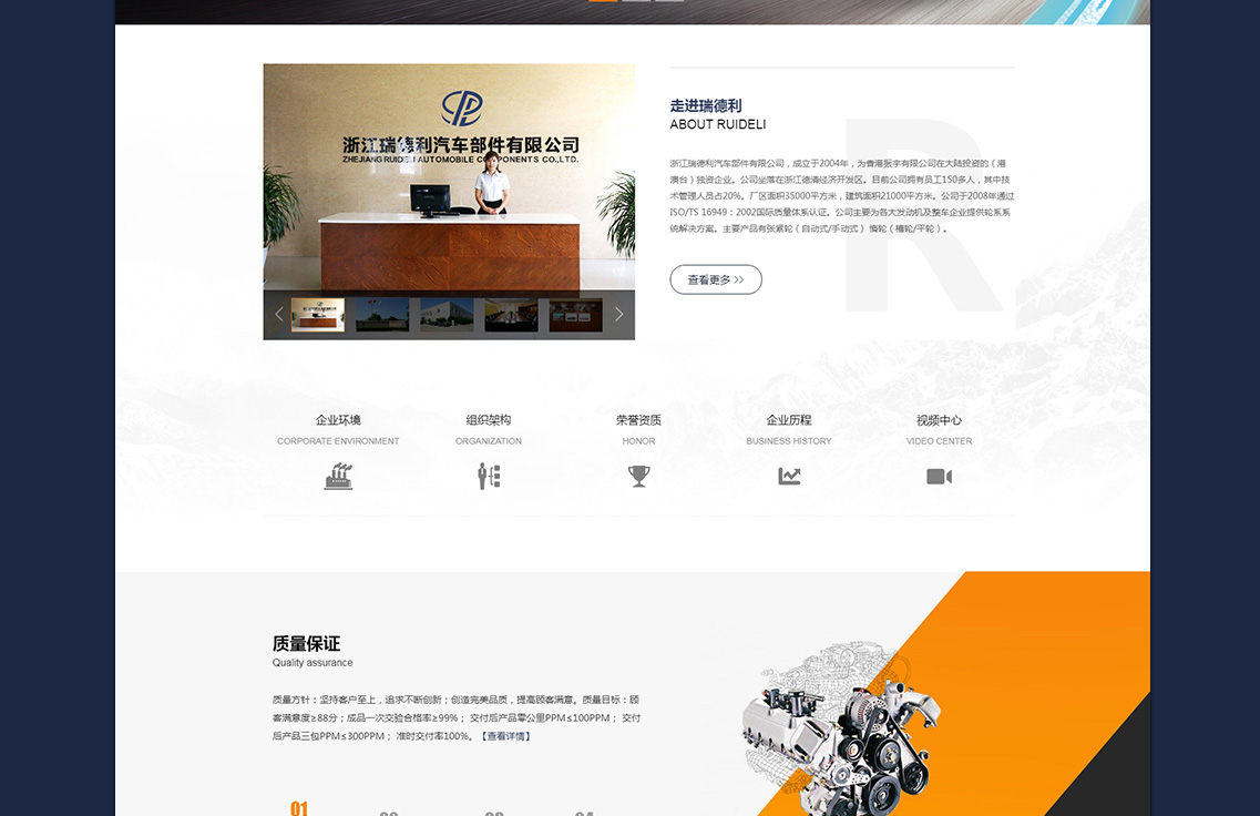 浙江瑞德利汽車部件有限公司,成立于2004年,為香港振宇有限公司在大陸投資的(港澳臺(tái))獨(dú)資企業(yè)。公司坐落在浙江德清經(jīng)濟(jì)開發(fā)區(qū)。目前公司擁有員工150多人,其中技術(shù)管理人員占20%。廠區(qū)面積35000平方米,建筑面積21000平方米。公司于2008年通過ISO/TS 16949:2002國(guó)際質(zhì)量體系認(rèn)證。公司主要為各大發(fā)動(dòng)機(jī)及整車企業(yè)提供輪系系統(tǒng)解決方案。主要產(chǎn)品有張緊輪(自動(dòng)式/手動(dòng)式) 惰輪(槽輪/平輪)。