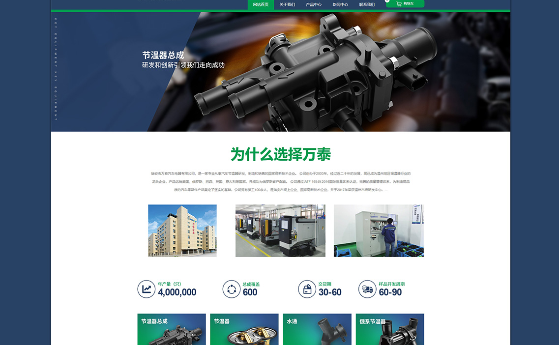 瑞安市萬泰汽車電器有限公司,擁有完整,完整的質(zhì)量管理,采集,生產(chǎn),制造,銷售和管理網(wǎng)絡(luò)的現(xiàn)代化管理體系。公司引進國外先進技術(shù)和設(shè)備,專業(yè)從事制造和銷售汽車各個車系的節(jié)溫器、節(jié)溫器總成、水通等產(chǎn)品。我公司堅持走科學(xué)技術(shù)發(fā)展之路,與高等院校和研發(fā)機構(gòu)長期合作,以“追求先進技術(shù),加強科學(xué)管理,優(yōu)化結(jié)構(gòu)為目標(biāo)”。在產(chǎn)品生產(chǎn)中,努力創(chuàng)造品牌是一種管理理念。