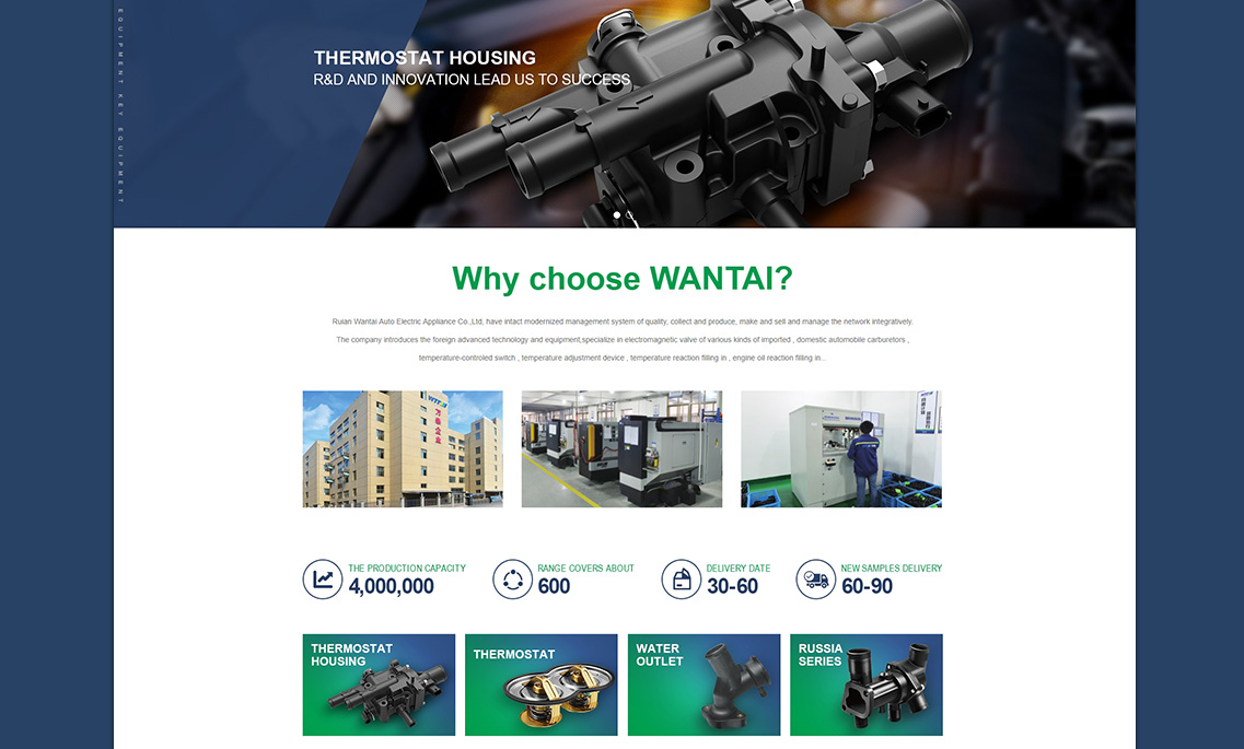 Ruian Wantai Auto Electric Appliance Co.,Ltd, have intact modernized management system of quality, collect and produce, make and sell and manage the network integratively. The company introduces the foreign advanced technology and equipment,specialize in electromagnetic valve of various kinds of imported , domestic automobile carburetors , temperature-controled switch , temperature adjustment device , temperature reaction filling in , engine oil reaction filling in , fuel tank float series, can form a complete set and use for every domestic and international brand automobile . At the same time the products can be had made to order according to the user's needs.