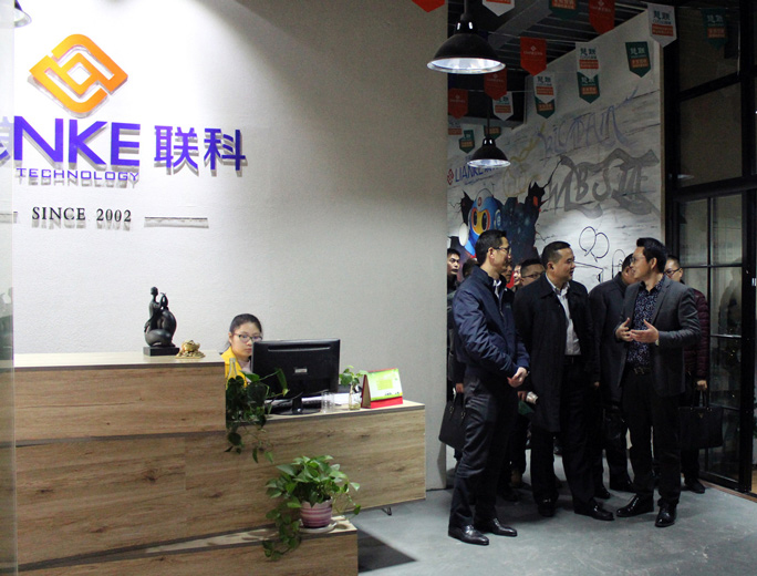 2015年12月30日下午,溫州市商務局(網(wǎng)絡經(jīng)濟局)局長陳向東局長及同行區(qū)委領導蒞臨我公司——溫州市聯(lián)科科技有限公司參觀交流。公司董事長鄭祥富向來賓簡要介紹了公司的發(fā)展歷程、研發(fā)規(guī)模和人員配置等概況。