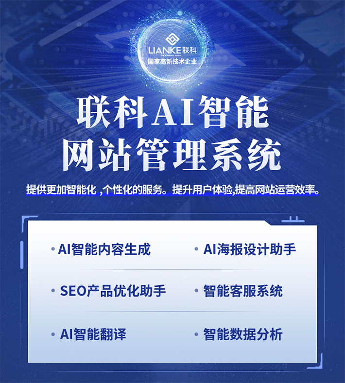 在當(dāng)今數(shù)字化浪潮下,企業(yè)面臨著前所未有的挑戰(zhàn)與機(jī)遇。如何在激烈的市場競爭中脫穎而出,不僅取決于產(chǎn)品和服務(wù)的質(zhì)量,更在于如何高效、智能地管理和優(yōu)化企業(yè)的線上門戶。聯(lián)科AI智能網(wǎng)站管理系統(tǒng),正是一款為現(xiàn)代企業(yè)量身打造的工具,它以人工智能為核心,旨在提供更加智能化、個(gè)性化的服務(wù),提升用戶體驗(yàn),提高網(wǎng)站運(yùn)營效率。